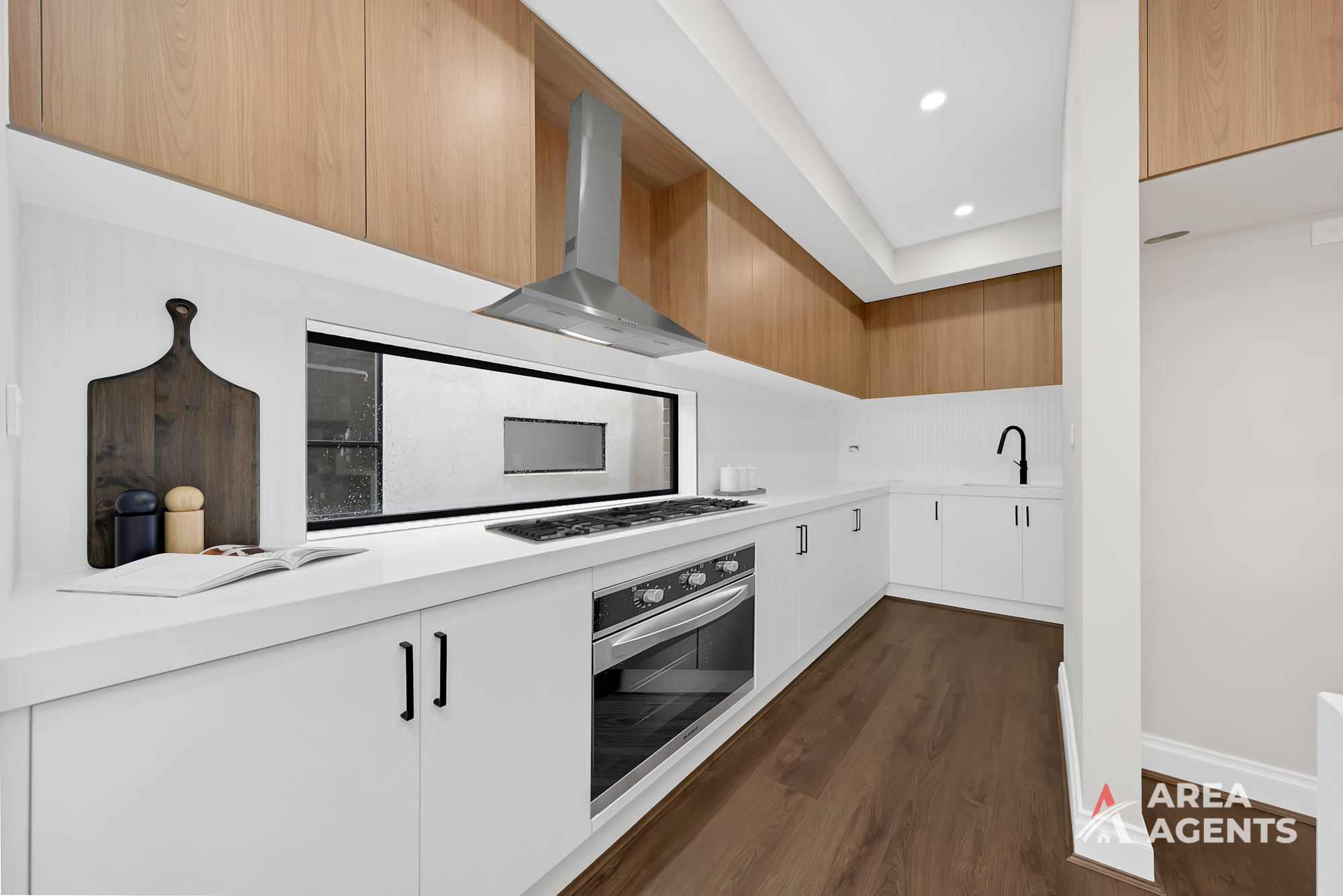 Second Kitchen / Sunroom Kitchenette - Beautifully designed for added convenience, this impressive second kitchen sits within the sunroom and is perfect for meal prep, catering, or keeping the main kitchen clutter-free. Featuring a 60mm stone benchtop, sleek cabinetry with extra overhead storage, and a modern black mixer tap, the space combines functionality with style. Large sliding doors flood the area with natural light and provide easy access to the outdoor space, while a bi-fold door seamlessly connects this kitchenette to the open-plan living and dining area, creating a practical and versatile extension of the main kitchen. Ideal for large families, entertaining, or those who love additional prep space, this thoughtfully designed second kitchen enhances everyday living with ease.