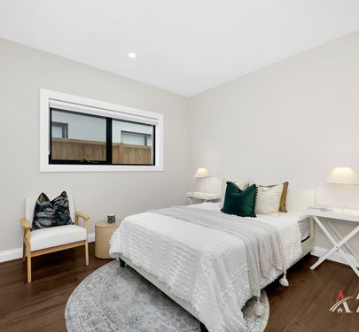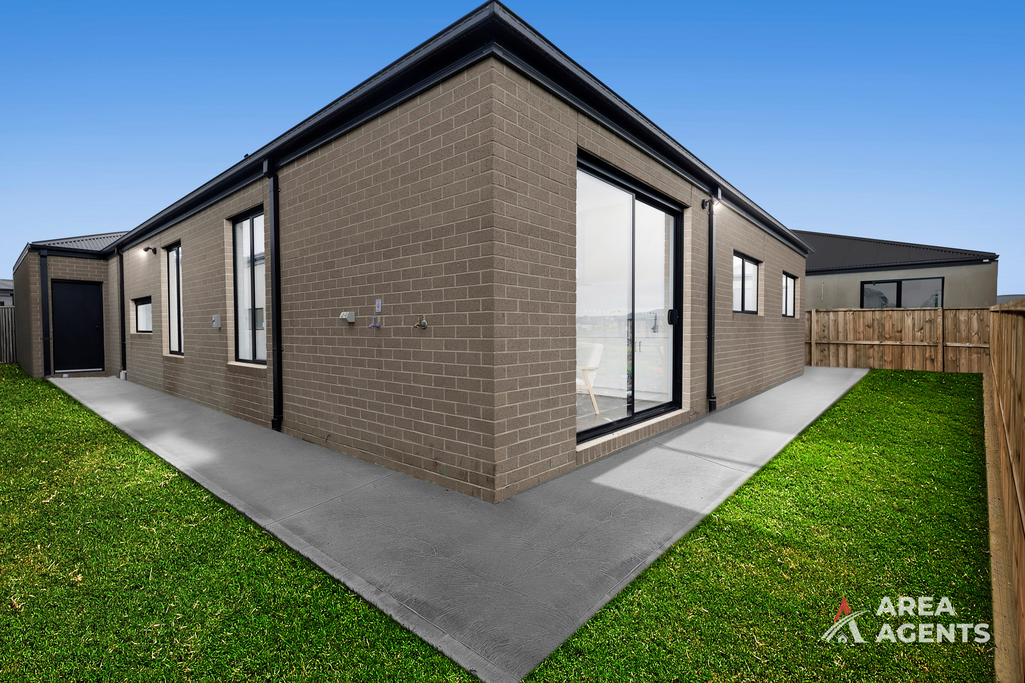 Welcome to 3 Rainbow Street, Wollert — a brand new, beautifully crafted residence showcasing a bold, contemporary façade with clean architectural lines and seamless colour contrasts. Featuring a stylish blend of brickwork, modern render, and a premium timber front door, this home immediately conveys quality and sophistication. Sleek black window frames, feature lighting, and an exposed aggregate driveway leading to the wide remote garage further enhance its modern elegance. Perfectly positioned in a family-friendly pocket, this brand-new home offers exceptional street presence and sets the tone for the impressive lifestyle awaiting inside.
