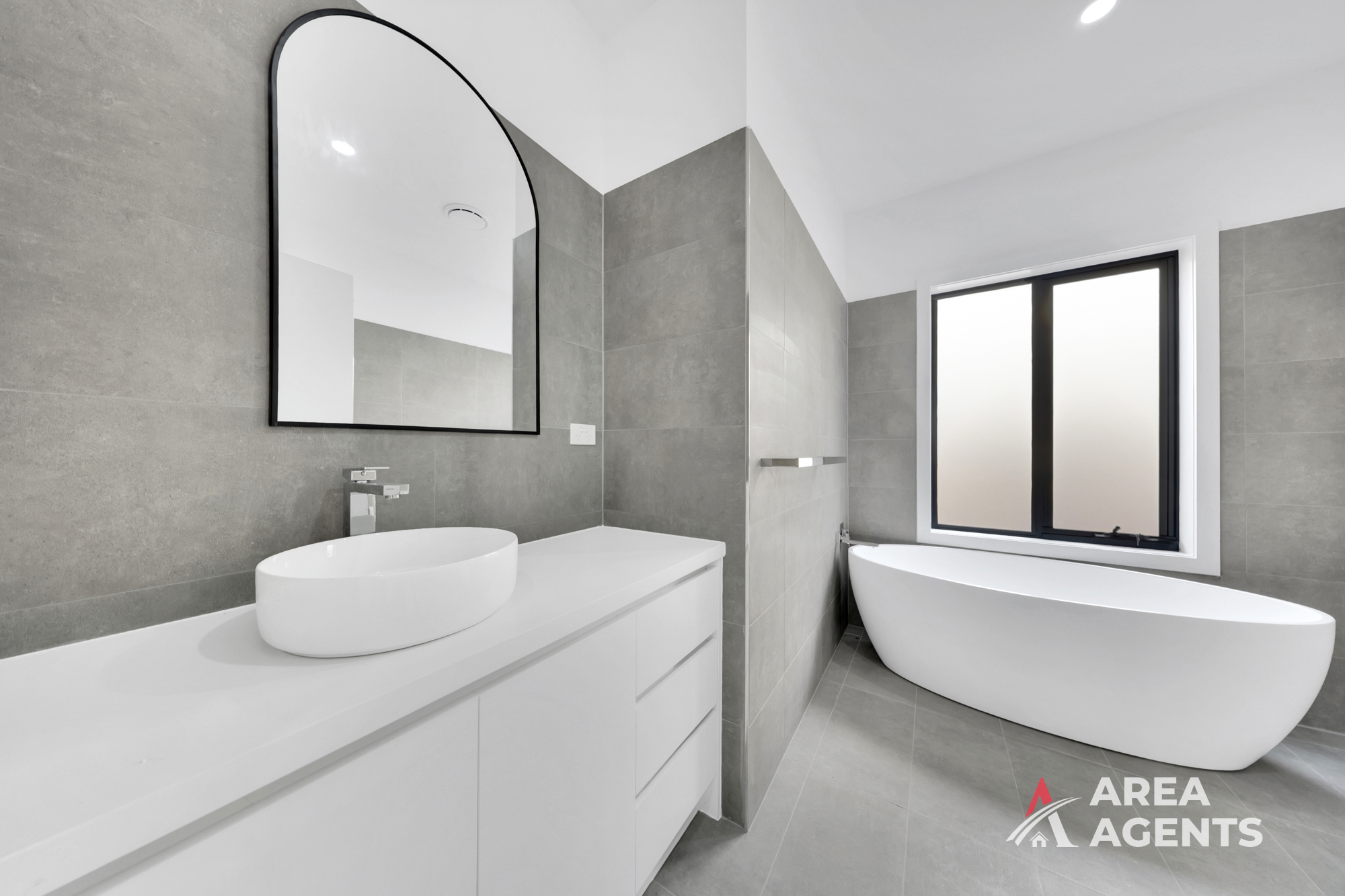 Central bathroom with freestanding bathtub & premium finishes