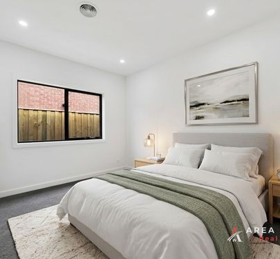 This home offers four spacious bedrooms, including two master bedrooms, featuring generous walk-in robes & built-in robes and beautifully appointed ensuites, providing comfort and privacy. The remaining two bedrooms are fitted with built-in robes and are serviced by a stylish central bathroom, showcasing a freestanding bathtub, oversized shower with rain head, full-height tiling, and a sleek stone-top vanity delivering both luxury and practicality for the whole family.
